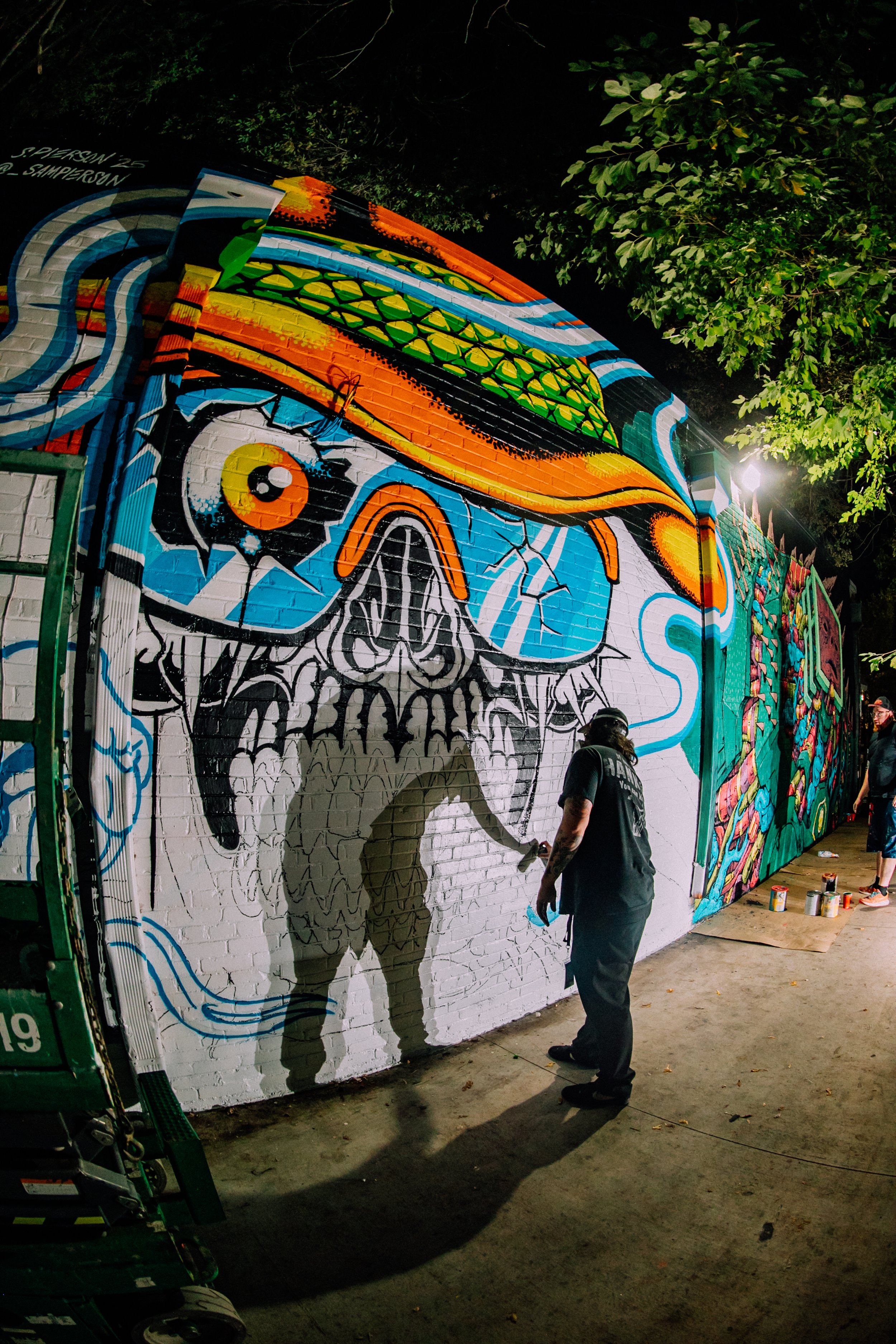 Denver, Colorado-based artist Sam Pierson has spent the last decade cultivating a distinct artistic voice characterized by the radical bold, iconic illustrative designs and murals. Deeply rooted in the subcultures of underground music, skateboarding, and 90's pop culture, his work stands as a testament to his keen ability to blend diverse influences into a cohesive and visually striking narrative. Clients include Audible, Liquid Death, NADC Burger, Santa Cruz Skateboards, Creature Skateboards, DC Shoes, Nightmare Snowboards, 303 Boards and many more.